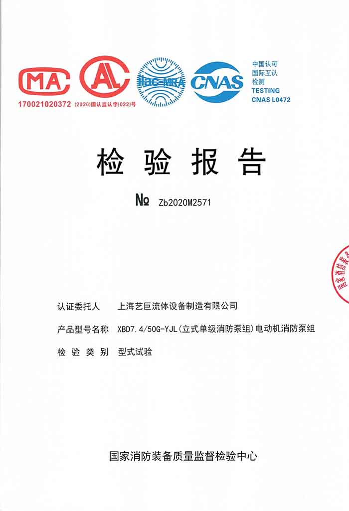 公司榮譽 XBD7.4/50G-YJL電動機消防泵組檢驗報告 更新時間 2024-06-29 14:44 閱讀 上一篇:XBC5.0/320G-YJW柴油機消防泵組檢驗報告 下一篇:YJ-2XF-15 型消防電氣控制裝置檢驗報告